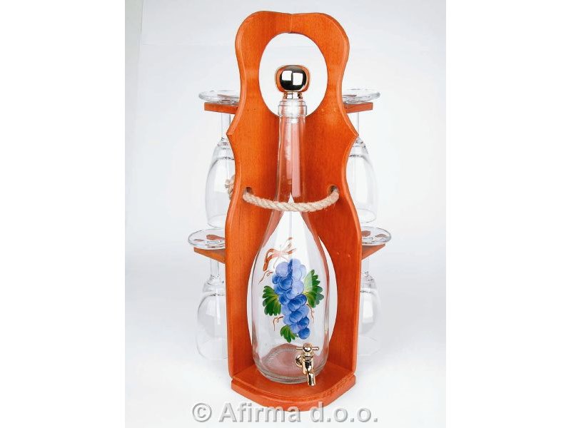 Steklenica 0,75 l, poslikana, s pipo, 4 kozarci 0,1 l, višina 45 cm