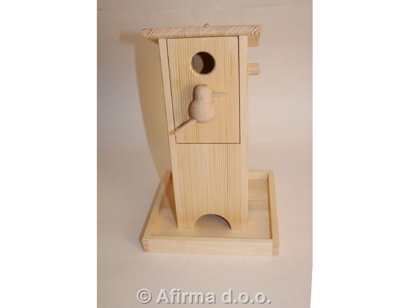 Ptičja krmilnica 11x11x32 cm s podstavkom 20x20 cm.