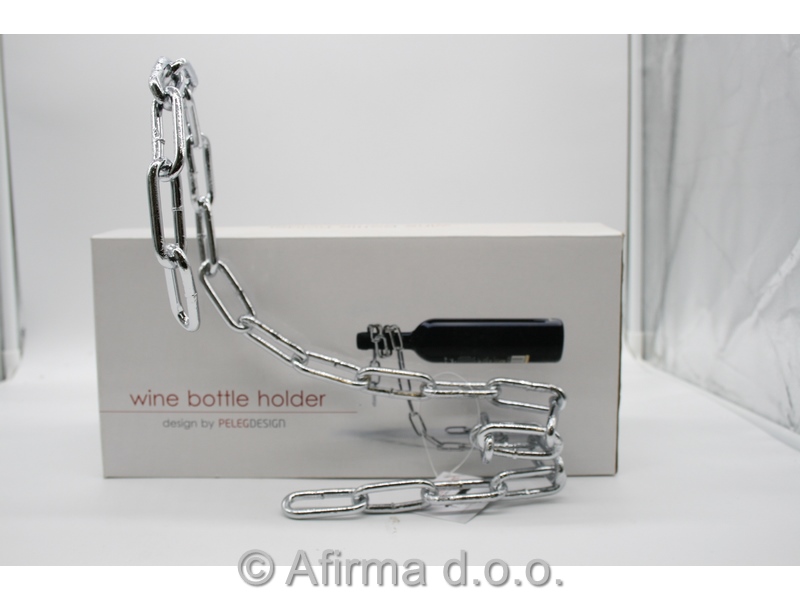 Kovinsko stojalo za buteljke, pakirano v darilno embalažo.