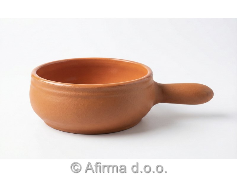 Ognjevarna keramična skleda z ročajem fi14x20x5 cm.