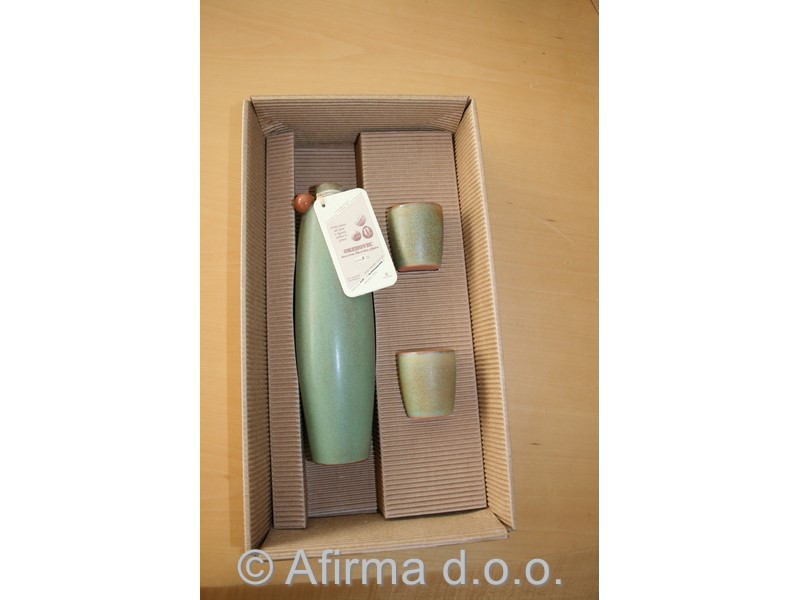 žganje 0,25 l v lončeni posodi, 2 kozarčka 0,03 l. Pakirano v darilni embalaži.