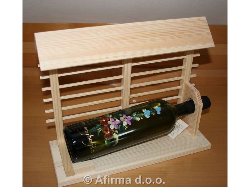 Ročno poslikana steklenica z vinom 0,7 l v leseni nosilki.