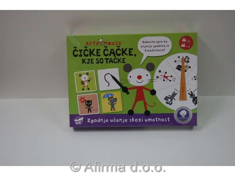 Kreativna igra spomina za predšolske otroke od tretjega leta dalje. Cilj igre je krepitev spomina. Igralec si mora zapomniti, kje na mizi se skrivajo mišek Arty in njegovi prijatelji. Igralec, ki ima zbranih največ kartic, zmaga. Zadnje strani ploščic imajo piši-briši površino, tako da lahko vsak igralec uporabi svojo domišljijo in označi ploščice s poljubnimi oblikami in simboli ter si tako lažje zapomni, kje je vsak izmed junakov skrit.