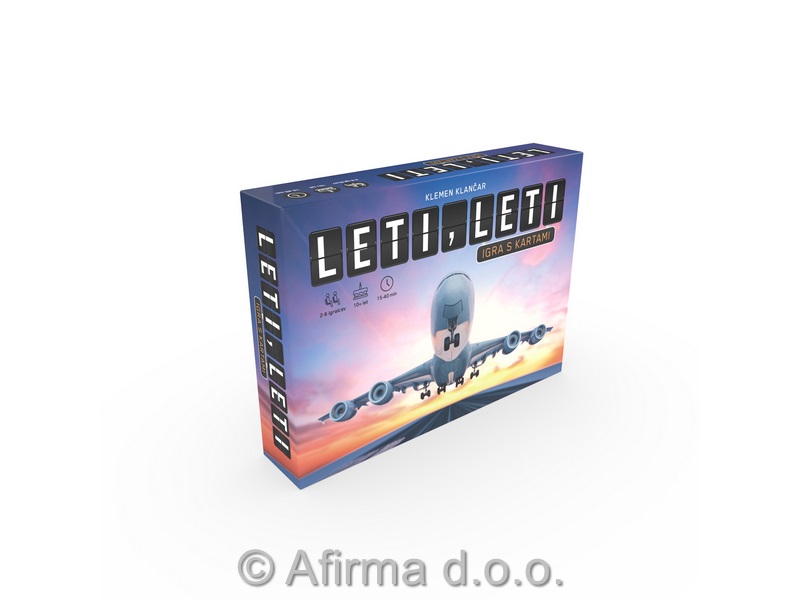 Leti, leti je izvirna igra s kartami, pri kateri igralci načrtujete letalske povezave po vsem svetu. Na začetku se odločite za enega izmed štirih ciljev igre in zbirajte točke, štejte potnike ali osvojene celine. Vsak krog izberite karto letališč ali letal in s povezovanjem letališč odpirajte linije. Skupaj s soigralci gradite verige linij v šestih barvah. Zmagovalec pa je lahko samo eden… Igra je primerna za dva do štiri igralce od 10 leta starosti dalje.