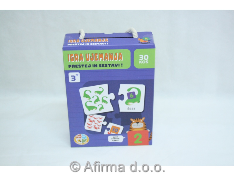 Igro sestavlja 30 kosov sestavljanke, iz katerih otroci sestavijo 15 ujemjočih parov. Igra spodbuja koncentracijo in pomaga razvijati prostorsko zaznavanje. Otrokom približa matematiko na zabaven način in istočasno spodbuja in utrjuje fino motoriko. Primerno za otroke od treh let dalje.