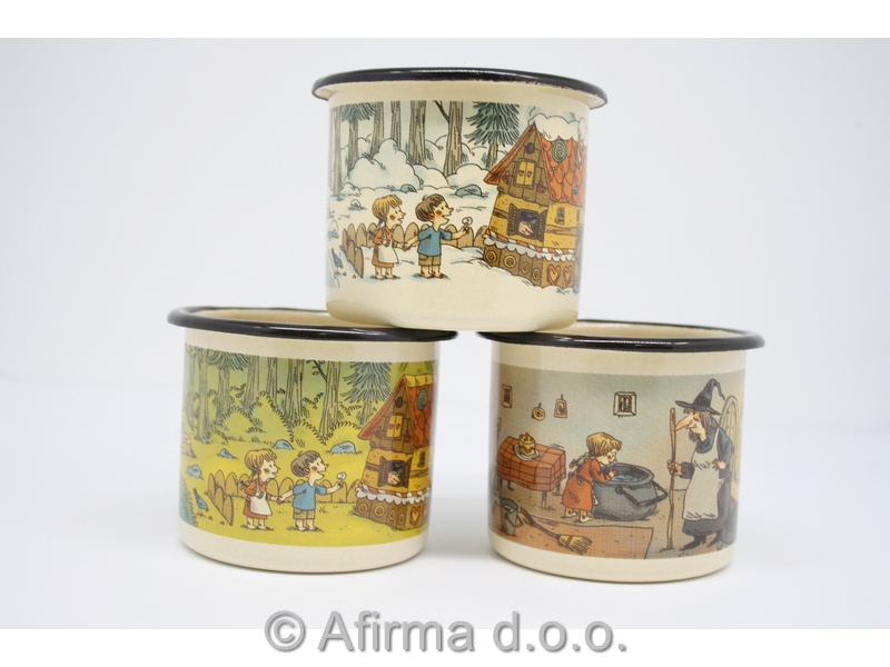 Emajliran lonček z motivoma Janko in Metka, letni in zimski motiv, 8 in 10 cm.