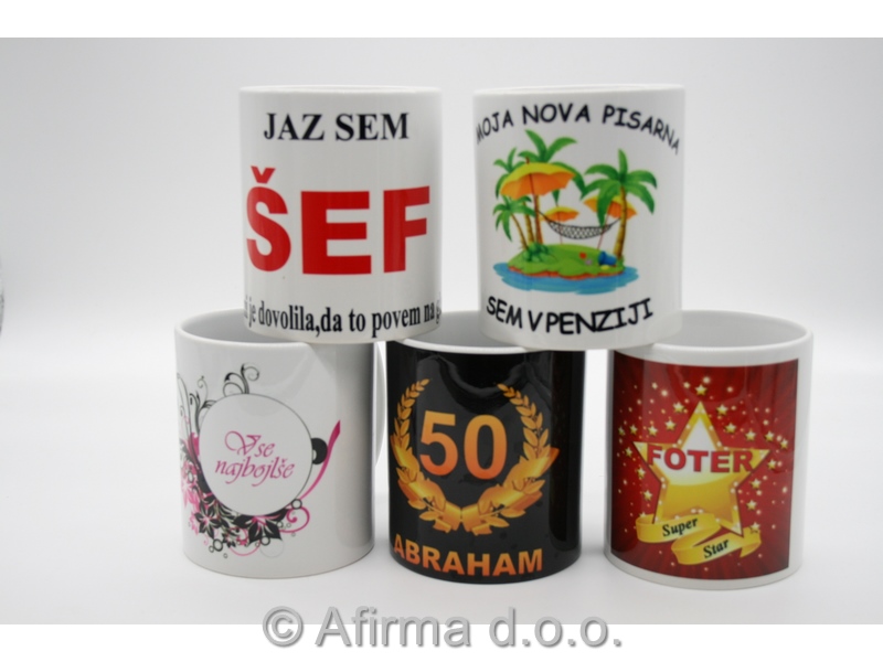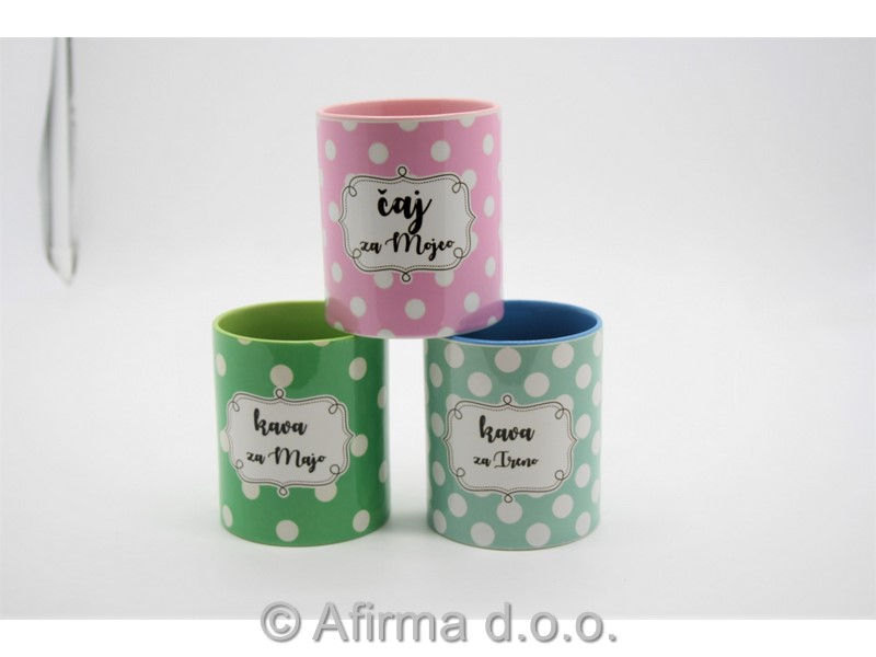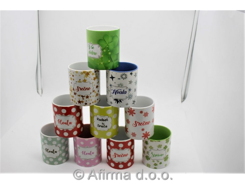 Keramičen lonček za čaj ali belo kavo višine 9,5 cm je možno dotiskati z motivi iz arhiva, možna pa je tudi dobava s personaliziranim motivom po naročilu kupca.