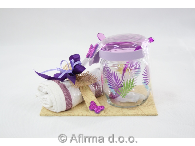 Steklena doza za začimbe in bombažna krpa 50x70 cm.