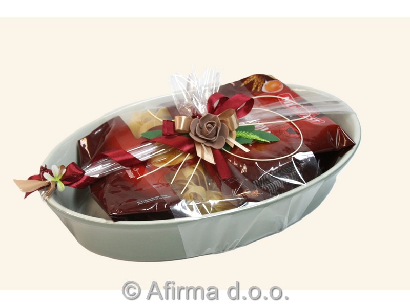 Ovalni keramični pekač 37x24 cm s testeninami v darilnem pakiranju.