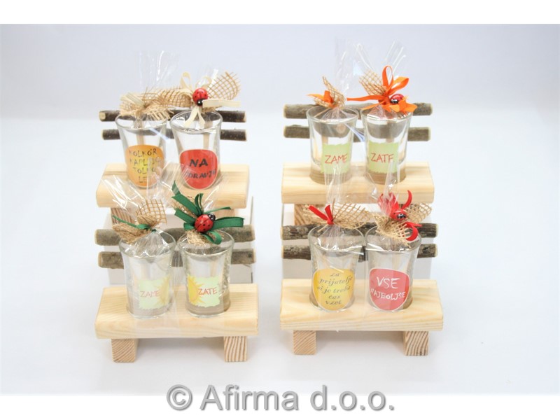 Dva žganjarja 0,03 l v nosliki klopca, darilno pakiranje.
