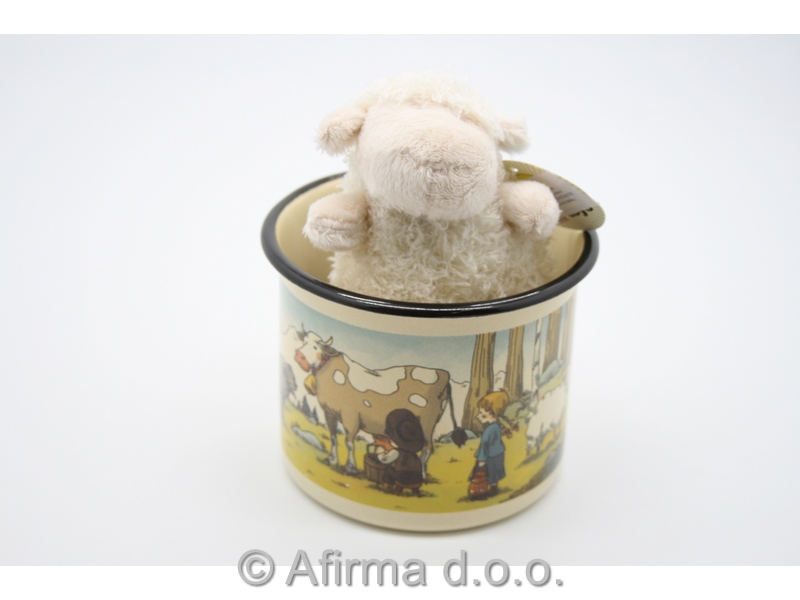 Emajliran lonček slovenske izdelave z motivom domačih ali divjih živali premera 8 cm (0,40 l) je primeren za uporabo v gospodinjstvu (tudi za pranje v pomivalnem stroju). Obesek ovca 10 cm pa je izdelan iz 100% poliestra.