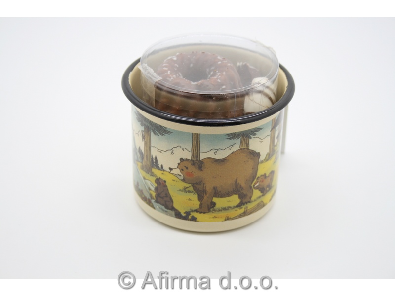 Emajliran lonček z motivom domačih ali divjih živali premera 10 cm (0,62 l) je primeren za uporabo v gospodinjstvu (tudi za pranje v pomivalnem stroju).