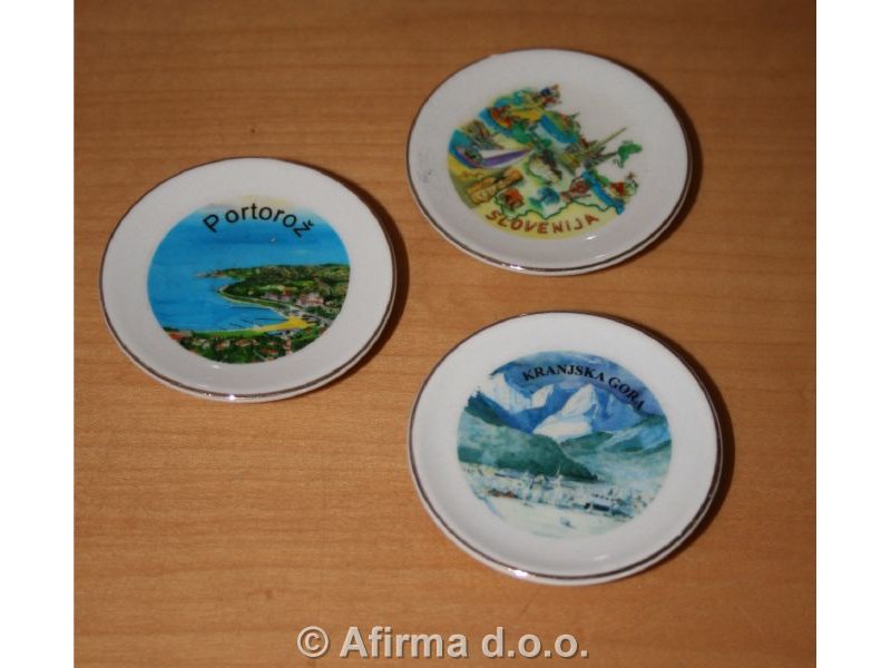 Keramični krožnik 6 cm, z zlatim robom in magnetom.