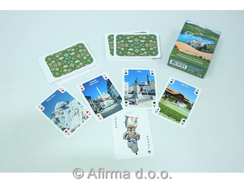 Set igralnih kart sestavlja 55 kart, s katerimi je možno igrati poker, bridge, canasto in ostale družabne igre z razpoložljivimi kartami. Na kartah so predstavljena večja slovenska mesta in pomembnješe turistične destinacije.