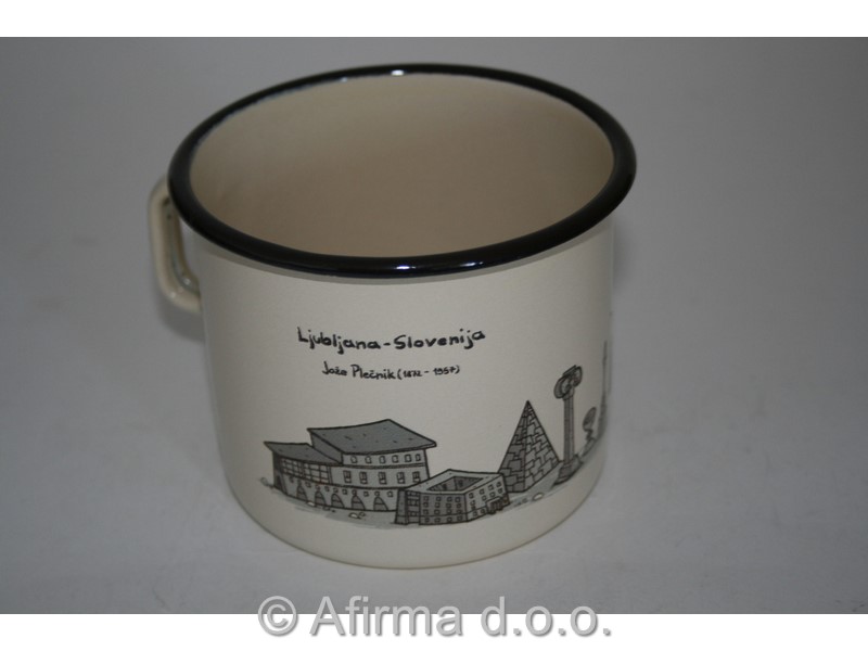 Emajliran lonček z motivi krajev v velikosti 8 in 10 cm.