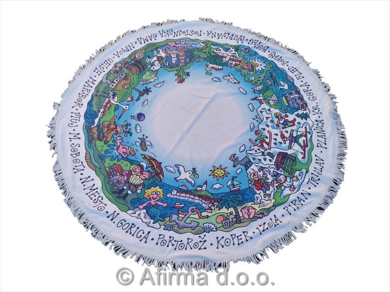 Brisača iz mikrovlaken je potiskana z motivi slovenskih turističnih destinacij. Motivi so delo znanega slovenskega karikaturista Marka Hočevarja. Brisača je med drugim še posebej primerna za uporabo na plaži.