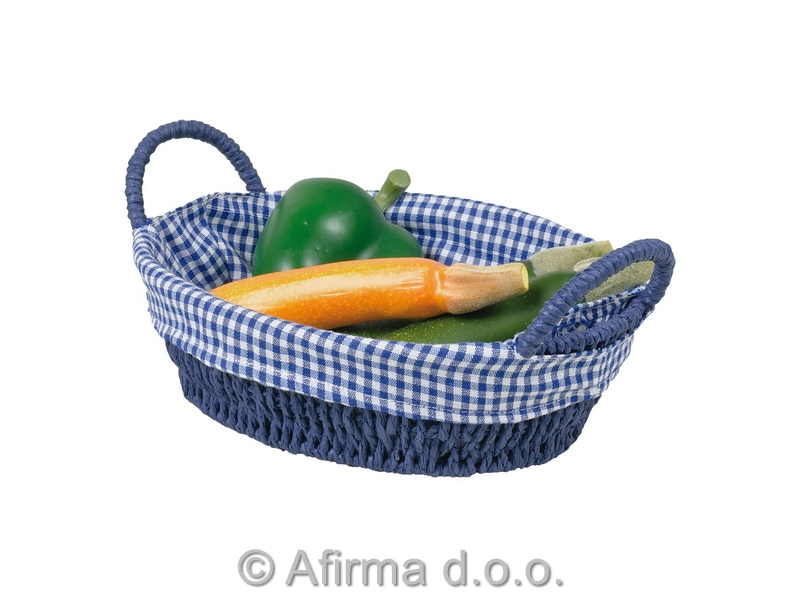 Košarica v modri barvi s tekstilno podlogo. Material: vrvica