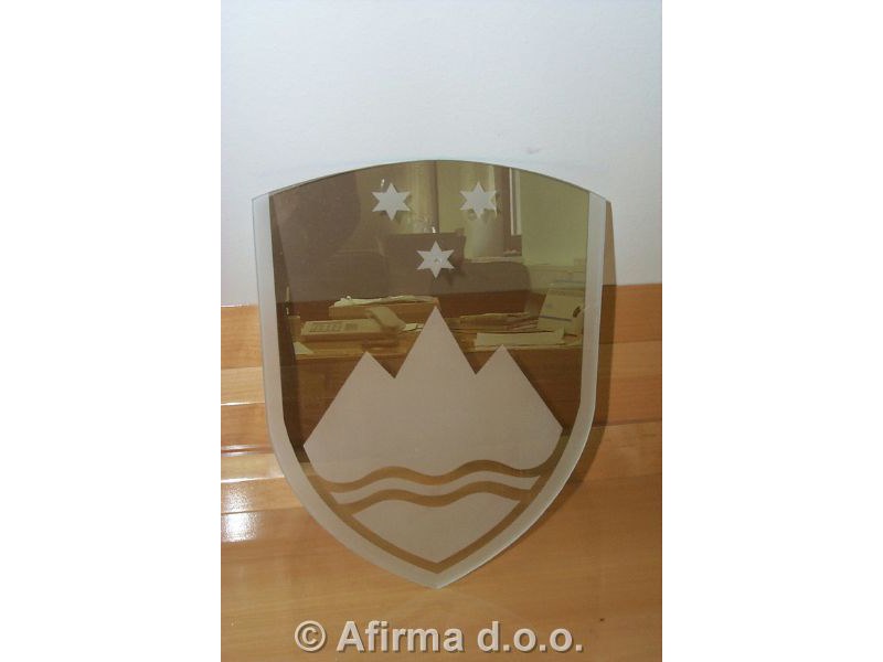 Peskan steklen grb 24x30 cm, pakiran v darilno embalažo.